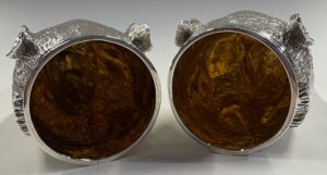 Thursday 27th November~ DAY ONE ~Lots 1 – 400~Friday 28th November~ DAY TWO ~Lots 401 – EndONLINE CATALOGUESthesaleroom.com CATALOGUEEasy Live CATALOGUEFeaturingPAUL STORR (October 1770 – March 1844)An English goldsmith and silversmith, Storr worked in the Neoclassical and other styles during the late eighteenth and early nineteenth centuries. His works range from simple tableware to magnificent sculptural pieces made for royalty.LOT 740A fine quality silver kettle on stand of melon design with naturalistic oak leaf and branch handle, acorn finial and Coat of Arms to front on original naturalistic base with Rococo feet.Approx. 2823 grams.Est. £5,000 – £6,000LOT 227A fine pair of silver stirrup cups in the form of badgersLondon 2008By William ComynsDiscontinued on Comyns website, price of £4000Approx. 446 gramsEst. £1,500 – £2,000 |